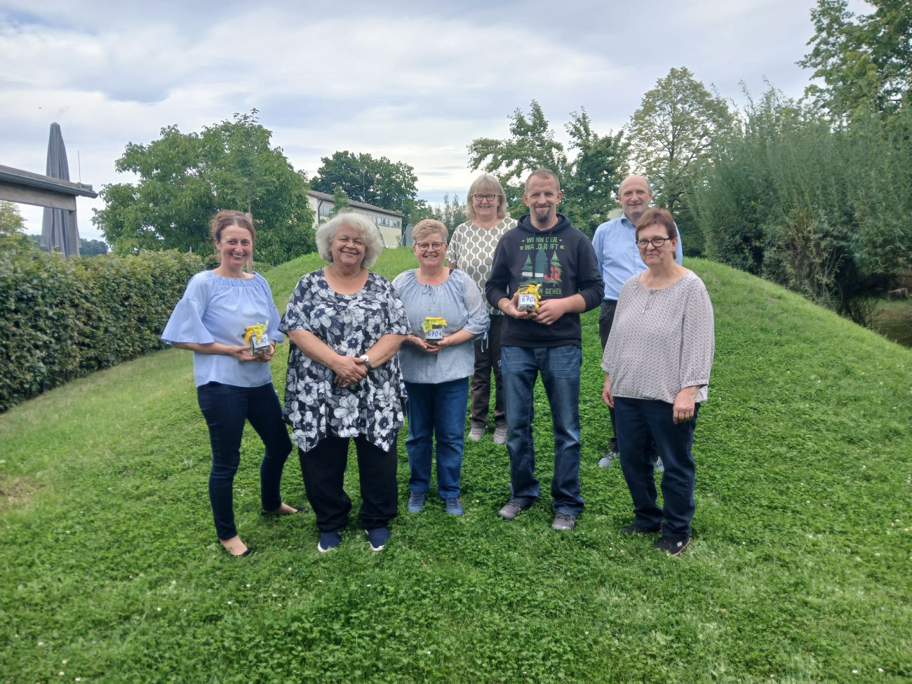 Das Bild wurde bei der Übergabe der Spenden angefertigt; darauf sind zu sehen (von links):